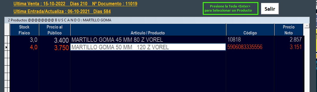 2 Digitando los ultimos cuatro digitos códigos de barra, mostrara los producto que coinciden