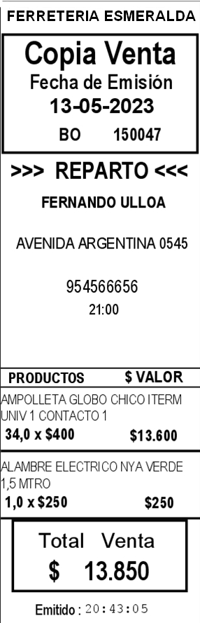🗸 Gestiona los Repartos a Terreno e imprime un comprobante con el Detalle. Productos,cantidad, nombre, dirección,teléfono.