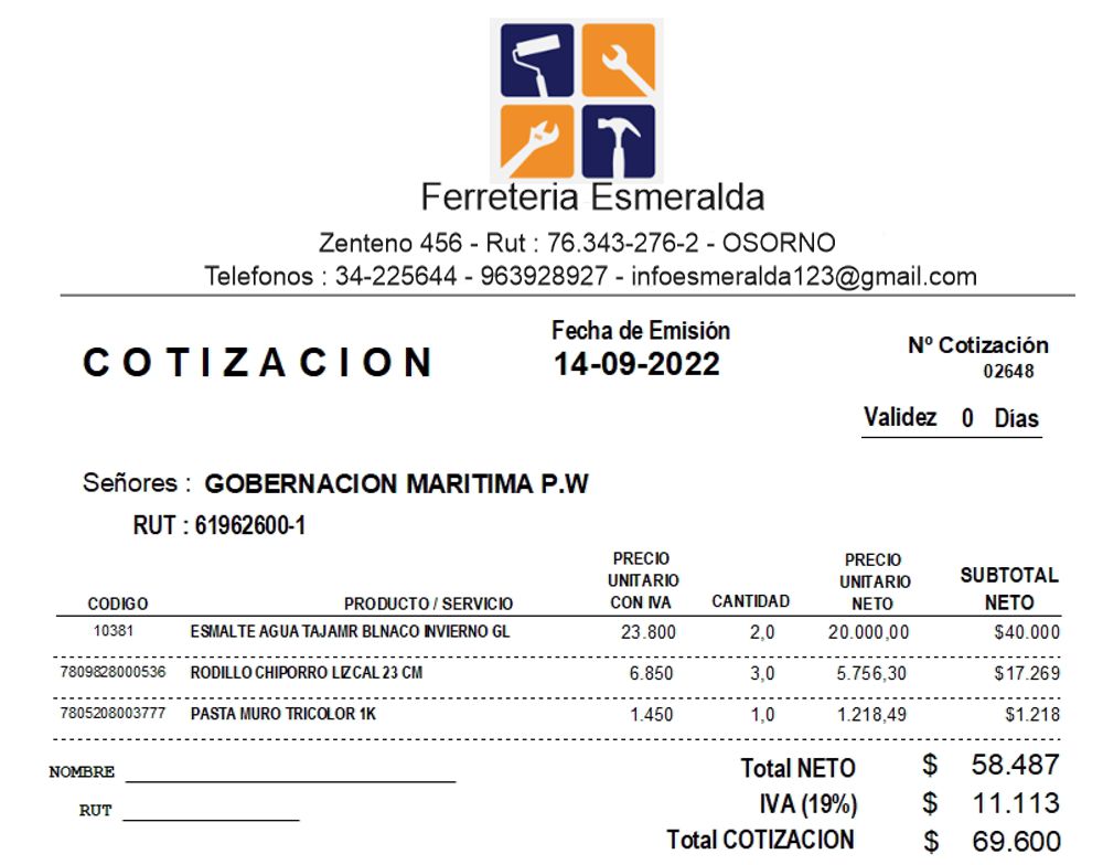 5 En Pantalla de Ventas, se emiten las Cotizaciones en formato Carta o Rollo térmico