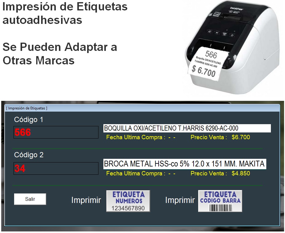 🗸 Permite imprimir etiquetas de códigos, para ser pegada en los productos