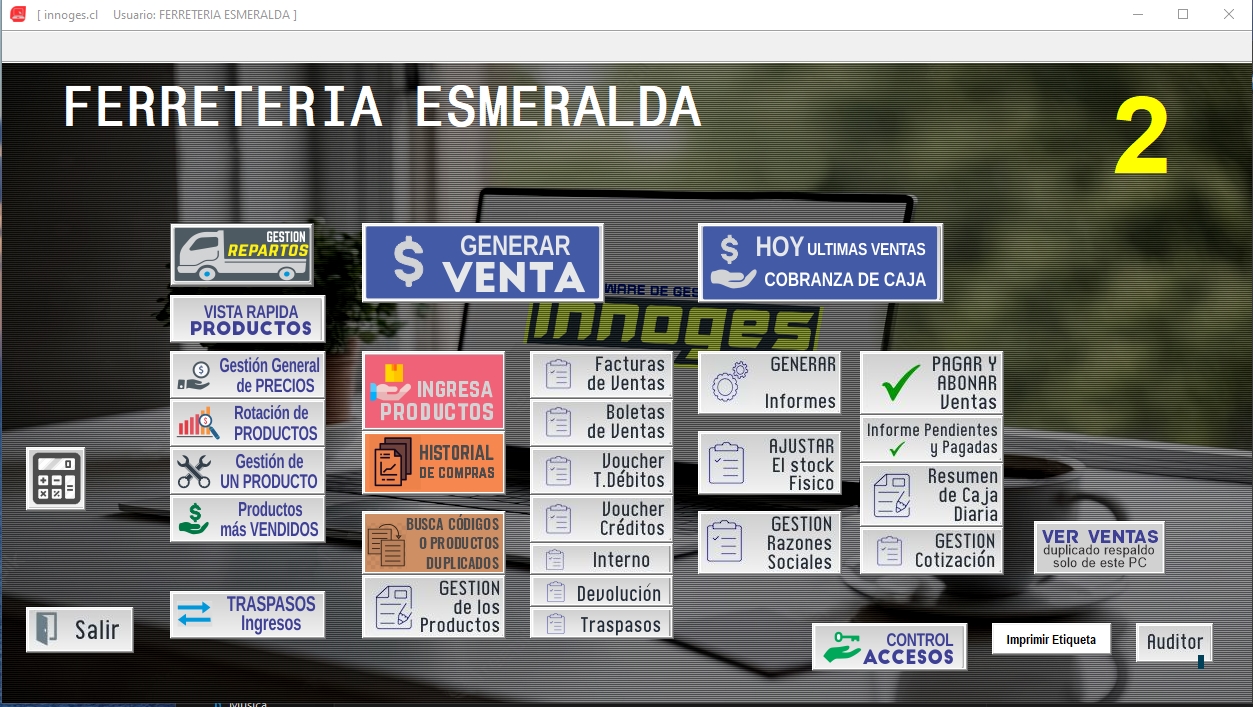 🗸 Permite Control de Usuarios : Cada usuario se puede asignar tipos de permisos : Ejemplo, Solo Vender.