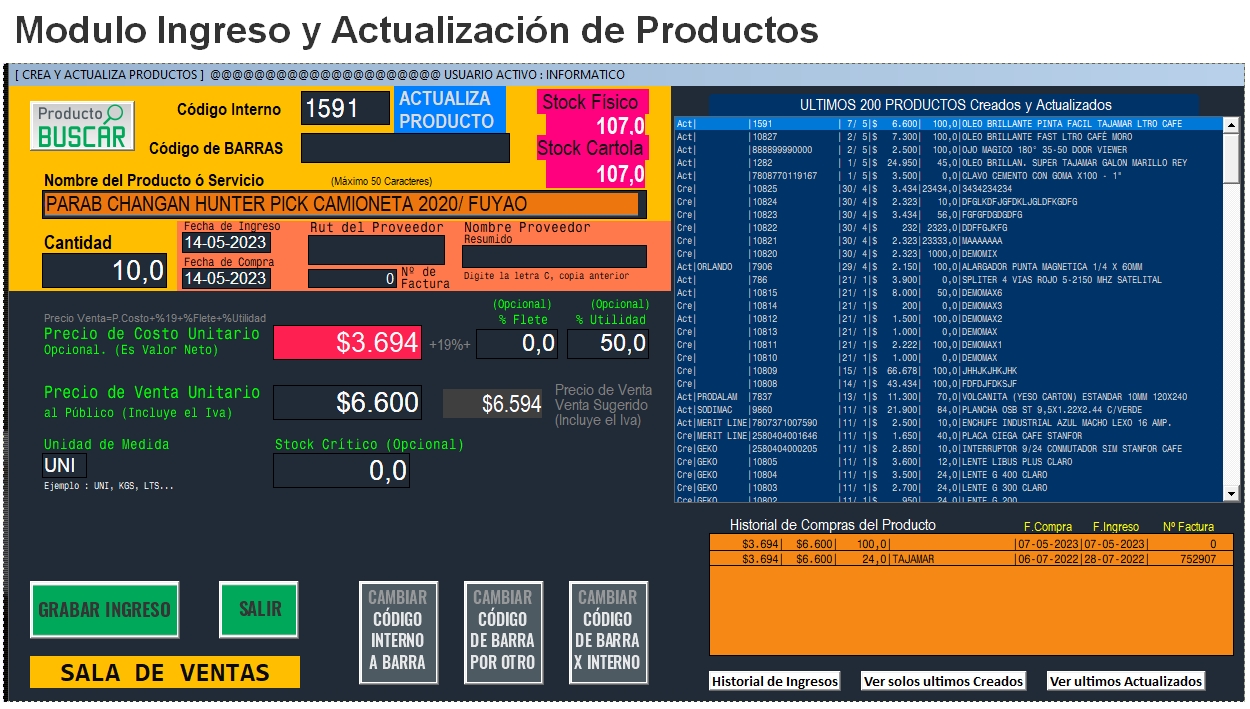 🗸 Permite códigos de barras y crear códigos internos, para productos sin barra